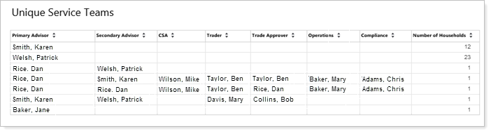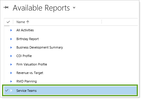 If you have Advisor CRM 2016, we've made it easy to identify the Service Teams you have created across all your Account/Households. You can run the new Service Team report to identify your active Service Teams and then use the list to create identical Service Teams in Advisor View.