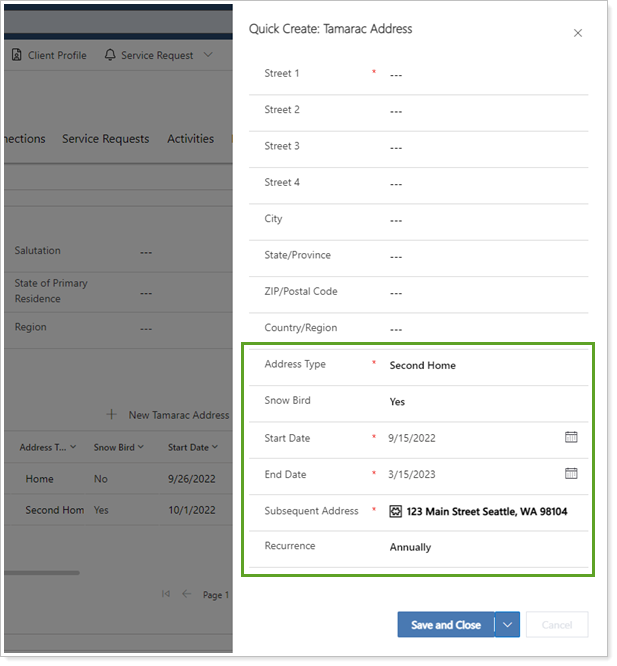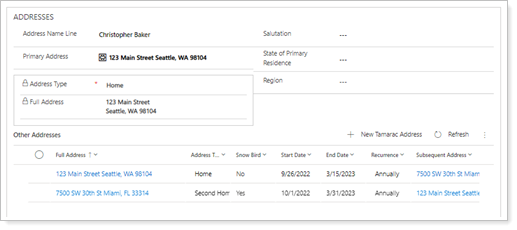 We added additional address features to help you manage addresses for the accounts of clients who aren't always living in one location. With the Snow Bird setting, you can automatically change addresses for a client by date, add a recurrence, and automatically update that person's address in Tamarac Reporting.