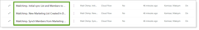 To use these Flows, you must have a Mailchimp account and credentials for their web application. These are not available for use with the Power Mailchimp app in Dynamics 365.