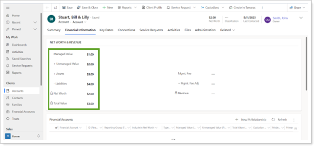 For more information, see Track Managed Value and Net Worth in Tamarac CRM.
