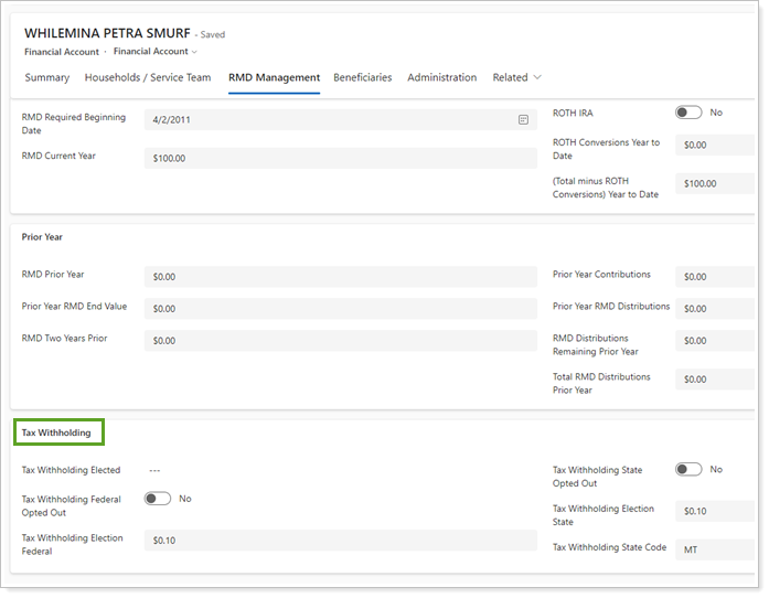 For more information about this integration, see Schwab RMD Integration.