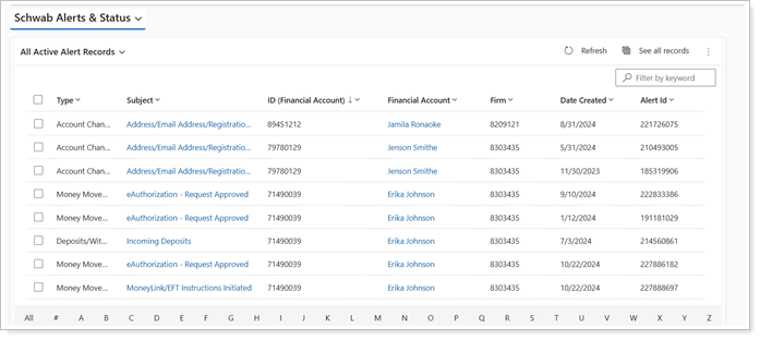 Whether you’re monitoring a move money request or transferring an account, you use alerts and statuses in Schwab Advisor Center to as an essential process to track work and help ensure you’re supporting your clients in achieving their financial goals. Schwab alerts keep you up to date on daily account activity, whether informational or require immediate action.