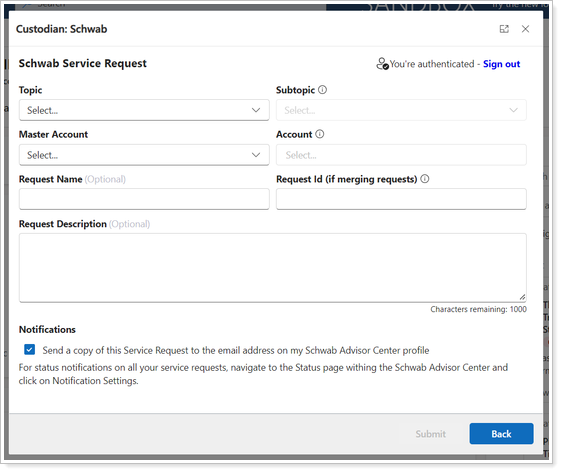 Submit Service Requests from Tamarac CRM to Schwab