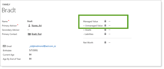 We've updated the net worth calculators as well and the total value now includes both managed and unmanaged values. You will see these new values in all the locations where you have a net worth calculator—they will be visible for views, dashboards, and reports, and they will apply to accounts, families and all other entities.