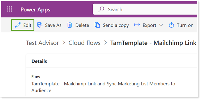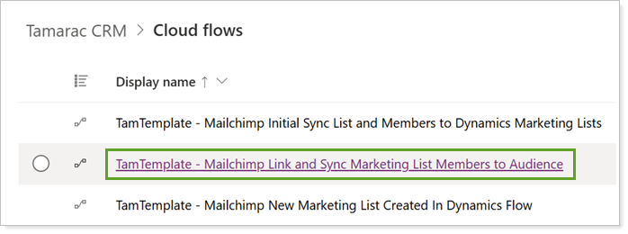 In Power Automate, open TamTemplate - Mailchimp Link and Sync Marketing List Members to Audience.