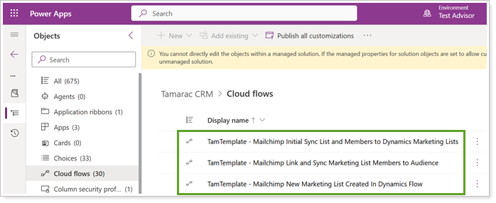 In Cloud flows, locate the Mailchimp flows: