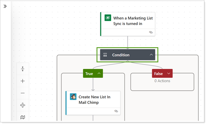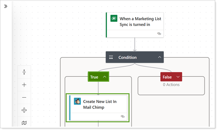 Under the True condition, select Create New List In Mail Chimp.