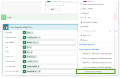 If the user Mailchimp credentials linked to this integration change in the future, you must re-establish the connection references in Cloud flows.