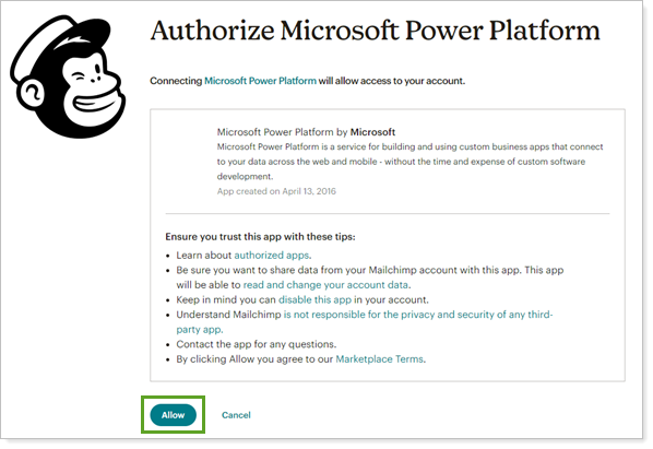 In Authorize Microsoft Power Platform, select Allow.