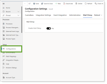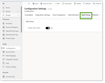 In Configuration Settings, select the Mail Chimp tab.