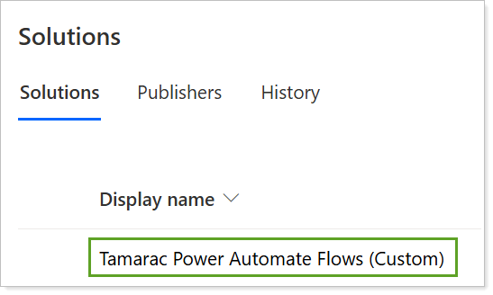 In Solutions, select Tamarac Power Automate Flows (Custom).