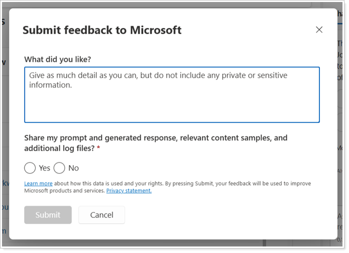 Provide feedback. Provide consistent feedback on recommendations to improve Copilot’s understanding and accuracy.