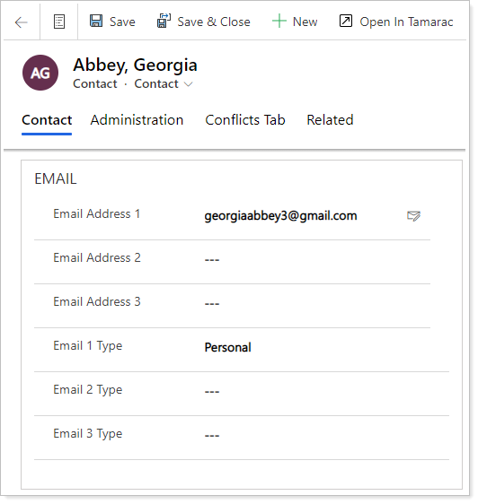 Click Save. When you change a client’s email address in Tamarac Reporting, the change in the corresponding linked Tamarac CRM contact is updated automatically.