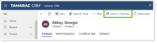 If the contact is not linked between Tamarac CRM and Tamarac Reporting, the client page in Tamarac Reporting opens in a new tab.
