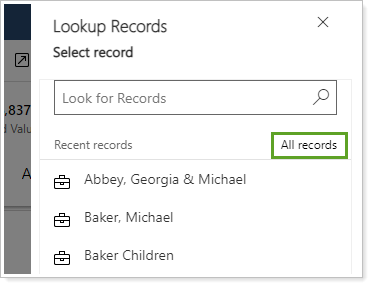 Click All records to see more details about the accounts and groups. This will also allow you to change the view of the records you see in Lookup Records.
