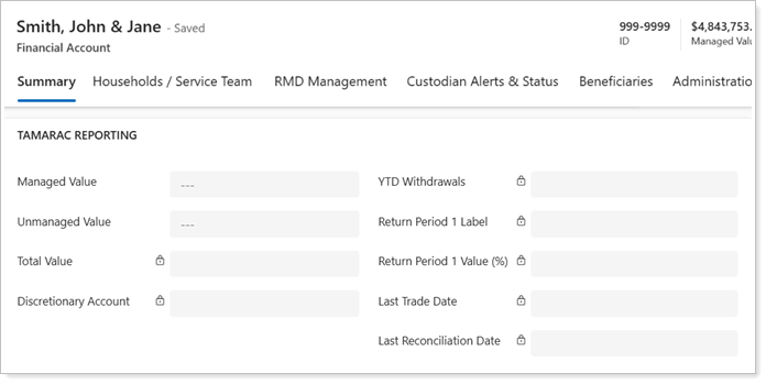The integration for this information is specific to Tamarac Reporting integration. If you are not using Tamarac Reporting, the integrated fields will be blank.