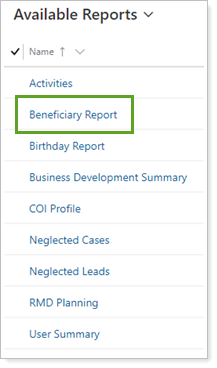 Select Beneficiary Report. The report then displays beneficiary data for that all accounts across your firm.
