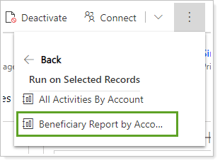 Select Beneficiary Report by Account. The report then displays beneficiary data for that specific account.