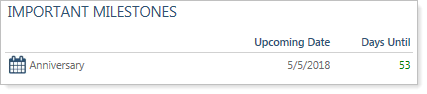 This section displays the primary and secondary contacts’ birth dates and anniversaries.