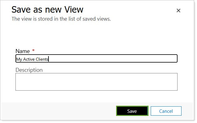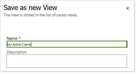 In Name, type a name for your new view. Optionally, type to add a Description.