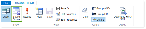 In Advanced Find, select Saved Views.