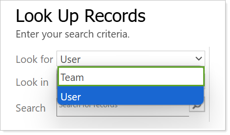 If you wish to share with a team, select Look for and Team.