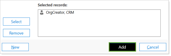 Once all desired Users and Teams are added under Selected records, select Add.