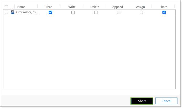 Once all permissions have been set for the desired Users and Teams, select Share.