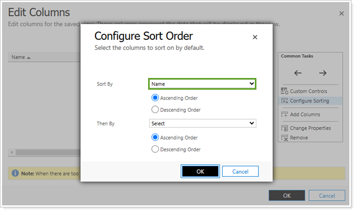 In Configure Sort Order, select Sort By to choose the criteria you want to use for sorting and select Ascending Order or Descending Order.