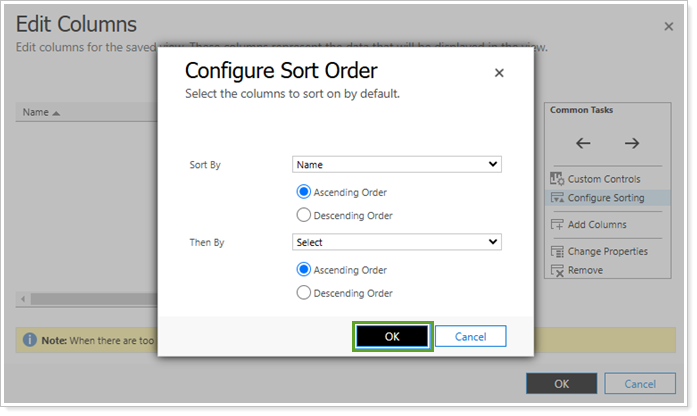 Once you have configured column sort order, in Edit Columns, select one of the following options based on your preferred next steps: