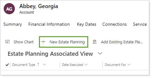Click New Estate Planning.