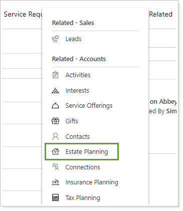 Click Related and select Estate Planning.