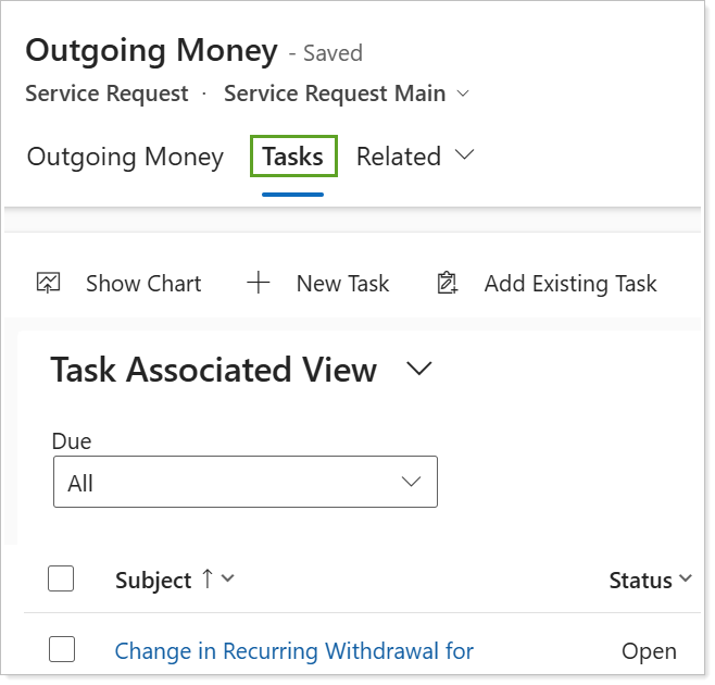 Service Request Tasks. When you open a service request from the Service Requests list or a record, you can view the unique Tasks for the individual service request.