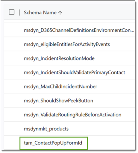 - Scroll to and select tam_ContactPopupFormId.