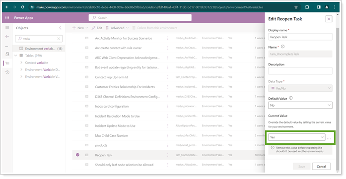 - Select Yes from the Current Value list.