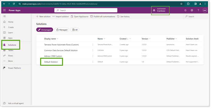 - Open the Default solution in Power Apps.