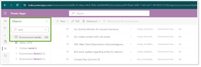 - Enter the keyword variable in the search box and select Environment Variables.