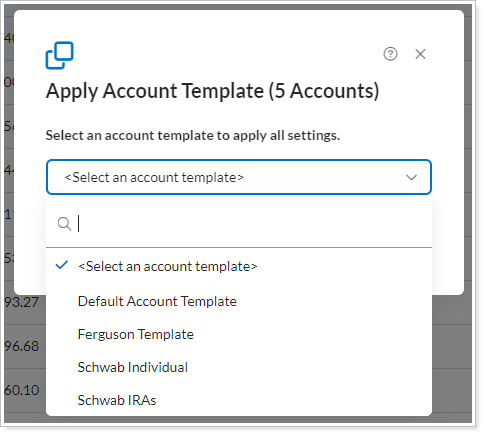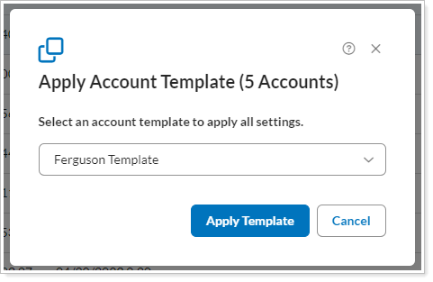 In the Apply Account Template dialog, select the template you want to apply to the selected accounts.