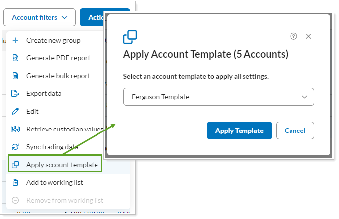 In the Actions list, select Apply account template.