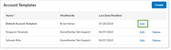 Click Edit next to the account template you'd like to change.