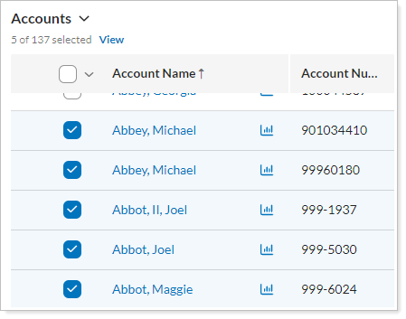 On the Accounts page, you can use the search and the saved search and account set lists to narrow your results.