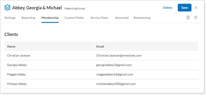 The Clients panel is a read-only panel. It allows you to see the clients that can view account information. Since clients are assigned at the Household level, this page makes it easy for you to audit access at the account level. If you need to make any changes, you can make them at the Household level.