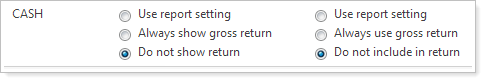 Select your desired options for Security Return and Category Return. For more information on settings available for cash, see Cash Settings.