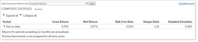 Composite statistic views are pre-defined layout snapshots. The report views make it easy to create several customized statistical views that show slightly different information—for example, some users may find it convenient to show deviation information vs. the specified benchmark.