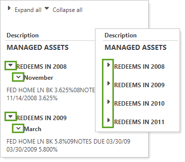 Expand (>) or collapse (˅) table rows to further control the level of detail.