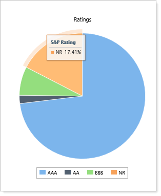 Pie chart. See a pie chart that reflects the proportions of each rating appearing in the total bond portfolio. For information about how the pie chart displays ratings, see Bond Analysis Ratings Pie Chart Agency Rating Scale.