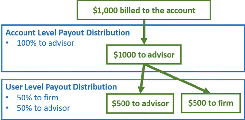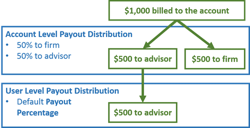 Payout distributions can be set up on either at the account level and, optionally, at the user level. In general, your firm will do one or the other, rather than both. Which one you choose depends on how your firm allocates payments.