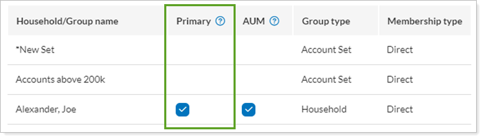 The Comparative Review report offers two unique group by options: Primary Household and Primary Household Primary Advisor. These unique Group by options originate from the following sources: