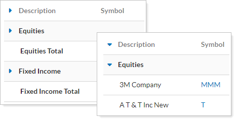 Expand (>) or collapse (˅) table rows to further control the level of detail.