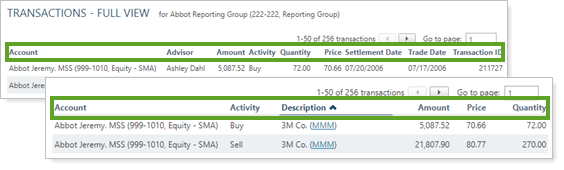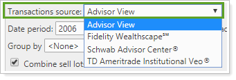 You can choose the data source: Either the custodian or Advisor View. If you choose Advisor View, the data could come from your portfolio accounting system, or from the custodian. To learn more about setting the data source, see Transactions Source.